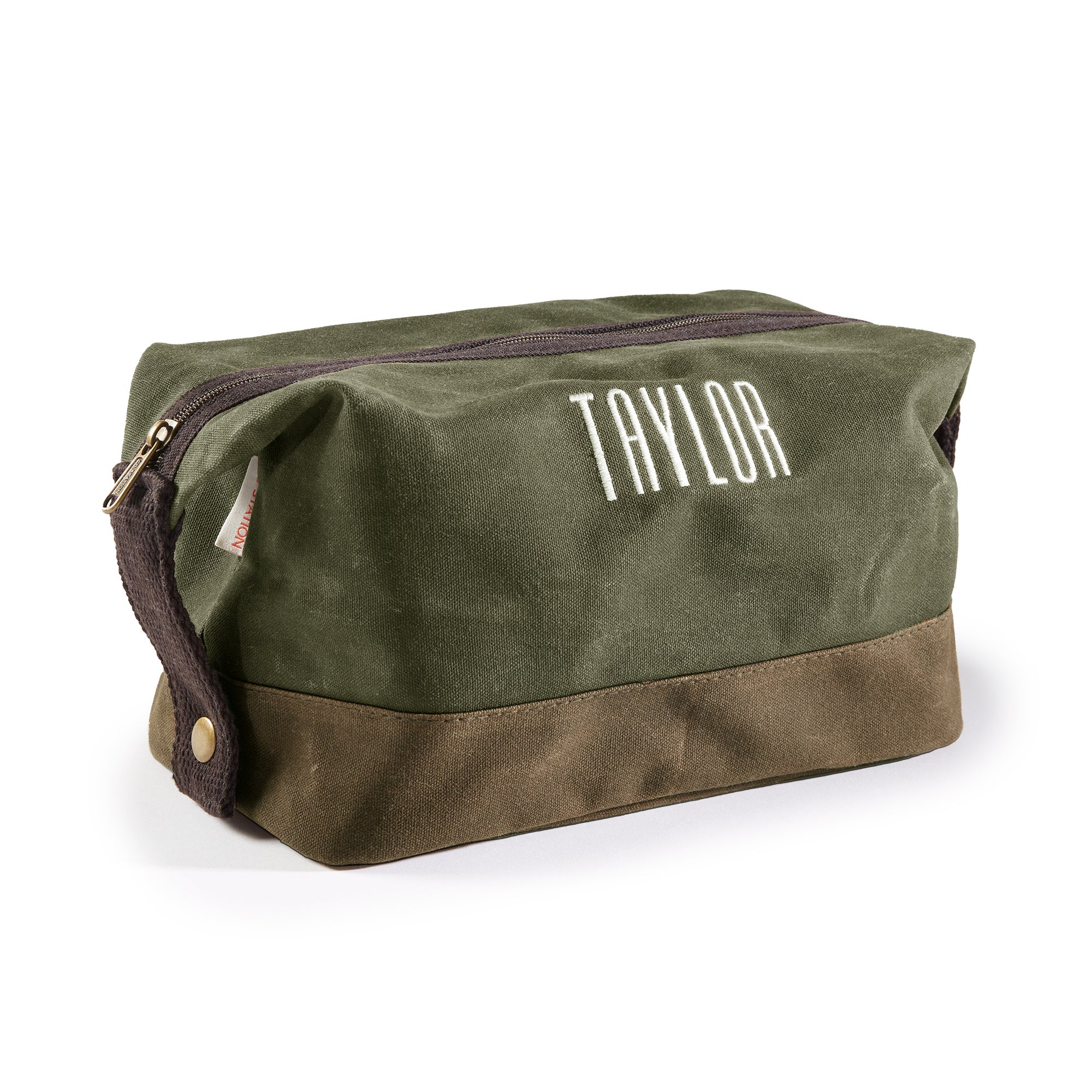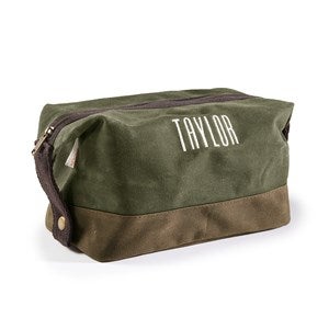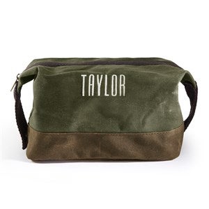 This Embroidered Olive Waxed Canvas Toiletry Bag is the perfect gift whether you are traveling globally or away for the weekend. The zipper closure makes it easy to keep everything secure, and to organize toiletries and other daily necessities.