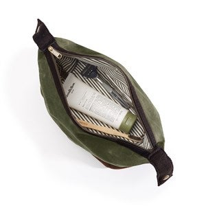 - Olive waxed canvas toiletry bag