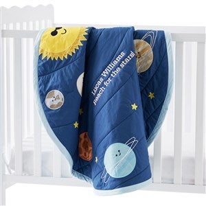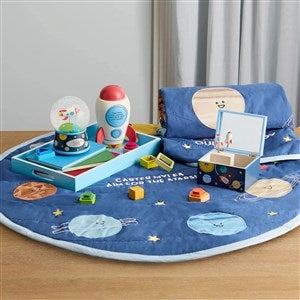 Embroidered Outer Space Quilted Play Mat provides a soft and fun area for baby to play! This is a perfect gift for baby showers, birthdays, holidays, and more! Embroider the center of the playmat with their name, birthdate, or a short message.