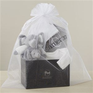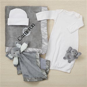 Embroidered Satin Trim Grey Baby Blanket with Clothes Set
