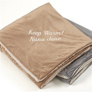 Our Embroidered Sherpa Blanket For Her is so soft and snuggly, they will never want to leave home without it! Our luxurious blanket comes in 2 color options, grey or tan, and 2 size options, 50x60 or 60x72. Personalized in your choice of multiple thread colors, 2 fonts and any 3 lines of text for a truly one-of-a-kind, unique gift.