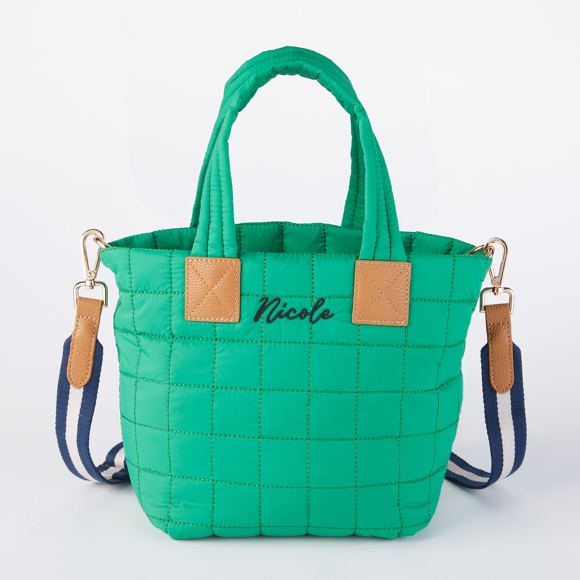 Embroidered Shiraleah Quilted Mini Tote in Green