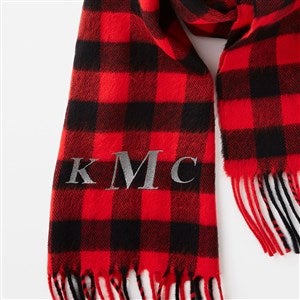 Embroidered Soft Fringe Scarf in Black and Red Buffalo Plaid