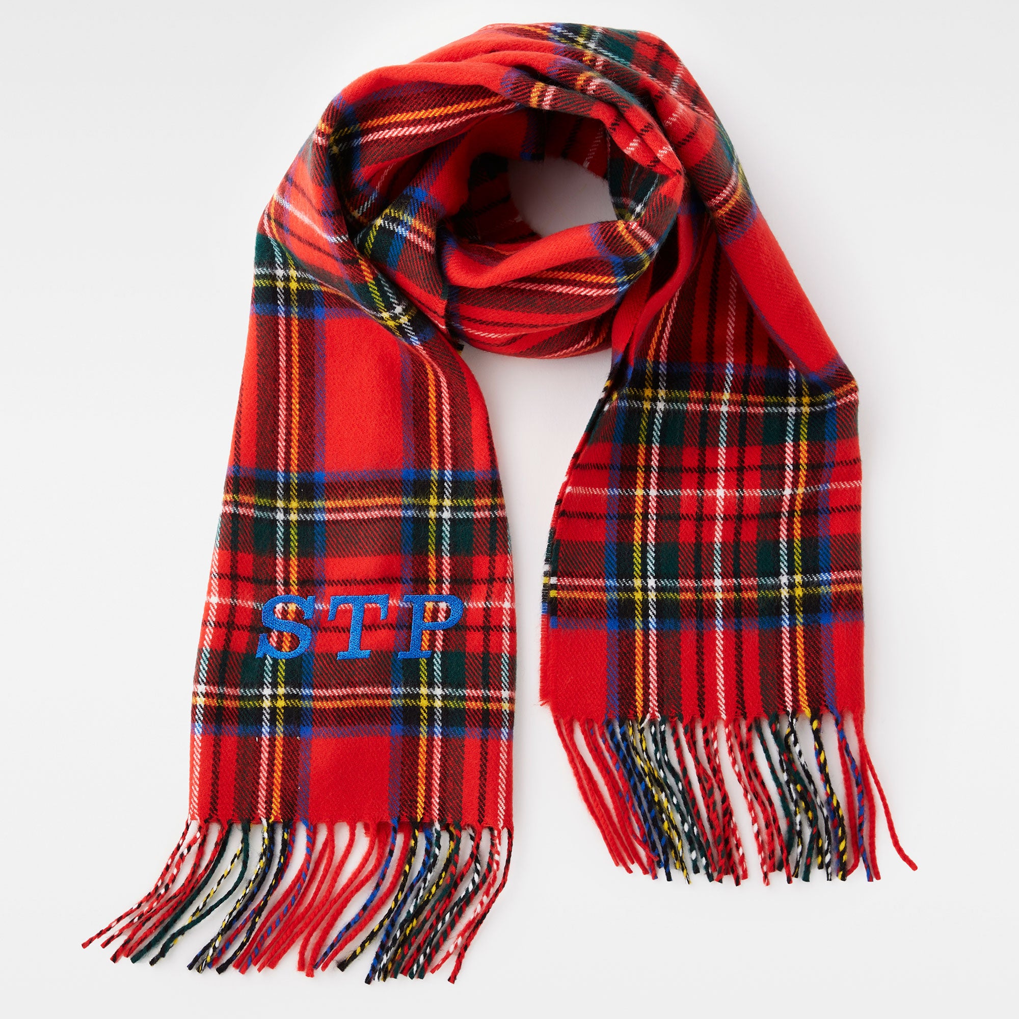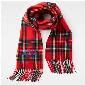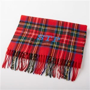 Embroidered Soft Fringe Scarf in Tartan Red Plaid
