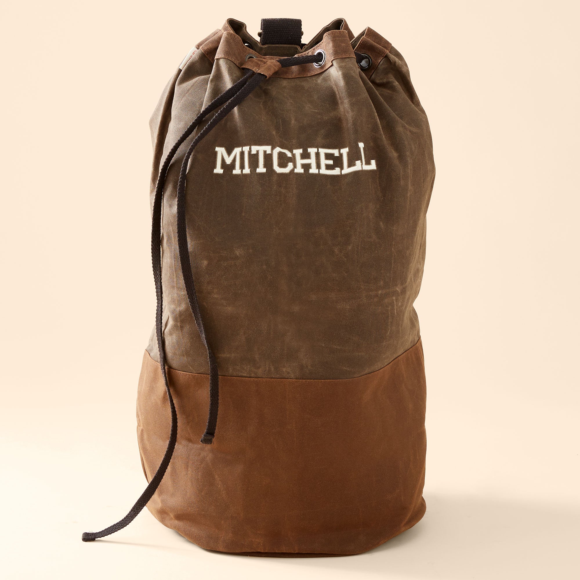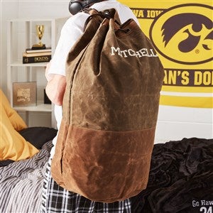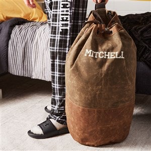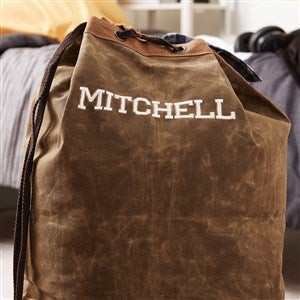 Give your dirty laundry a stylish look with our Embroidered Waxed Canvas Laundry Duffel Bag. The canvas laundry bag is the perfect gift for the graduate heading to college, a first apartment or housewarming gift.