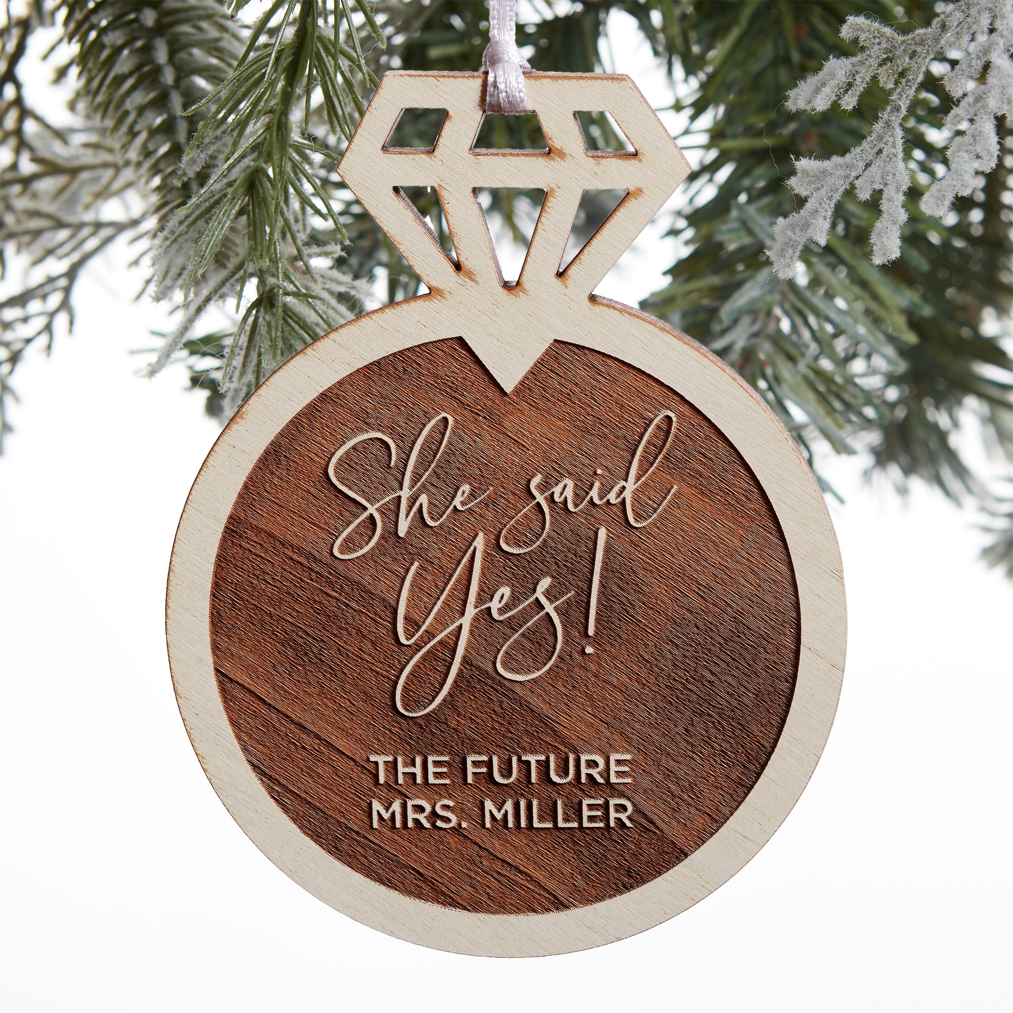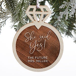 Sport that diamond for all to see with our exclusive Engagement Ring Personalized Wood Ornament. Makes a wonderful keepsake gift for any newly engaged couple.