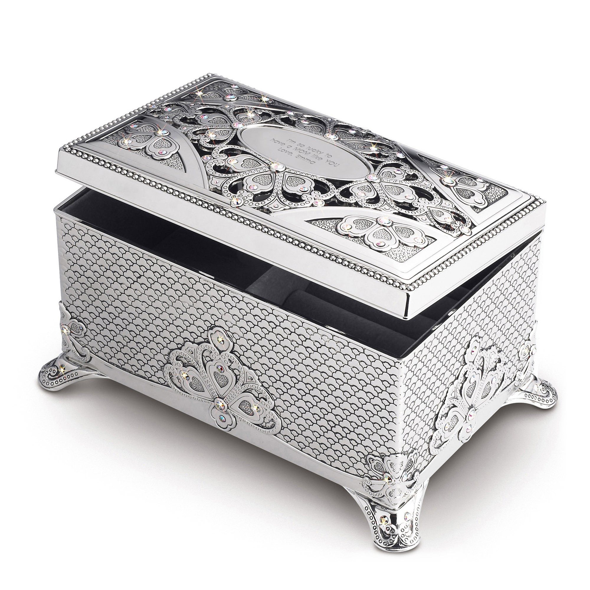 The Anastasia Floral Music Box has been a Things Remembered best-selling item for many years. This music box has room to store some of their prized jewelry pieces or accessories. Wind it up to hear "Unforgettable" play. We'll engrave the plate on the top of the lid with their name or a personal note from you!