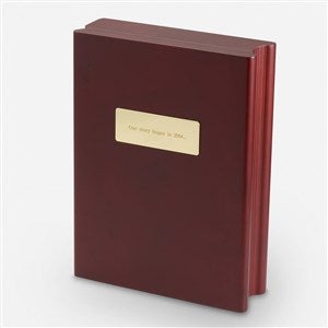 Looking for a gift they'll display and is also useful? Our Engraved Wooden Book Frame & Clock in mahogany color has two areas to leave them a personal message; on the plate of the book's cover and inside the book! On this inside they'll be able to feature a 6x8 photo of their choosing and have the time displayed on the opposite side. This clock and keepsake combo makes a great gift that is memorable for years to come.