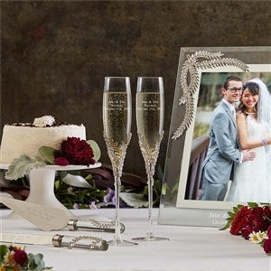 - Set of two champagne flutes that are part of the Things Remembered Athena Collection
