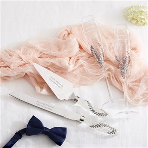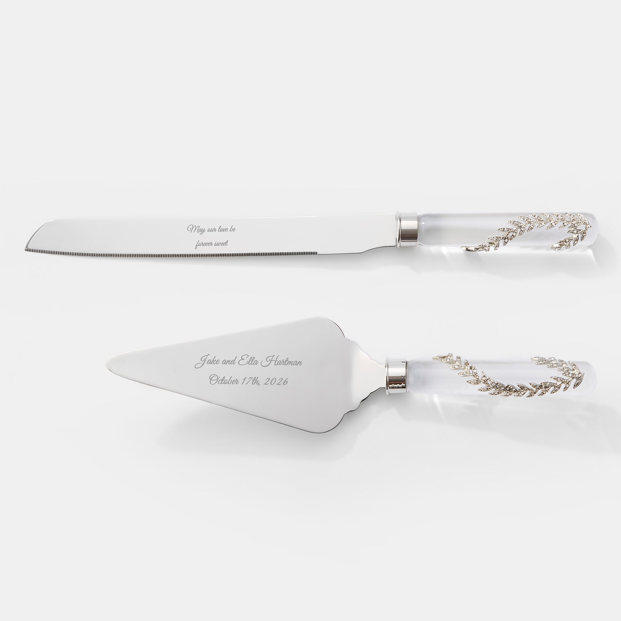 • Personalize with up to 3 lines of text on cake server and 2 lines of text on cake knife in your choice of font