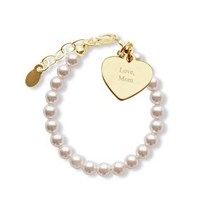 - Bracelet made of glass high-quality simulated pearls in soft white color and features a heart charm for engraving and a cross pendant near the closure