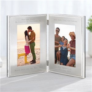 Our Silver Beaded Double-Photo Picture Frame is a fantastic gift to celebrate any occasion for years to come. We designed it for easy use- choose whether you want 4x6 or 5x7 photos, and remove the additional mat inside to display your choice of photo sizes! We engrave on above and below each picture, which gives you plenty of space to write their names, important dates, vacation location, or countless other options. They'll love the ability to switch up the photos and display their favorite moments to remember!