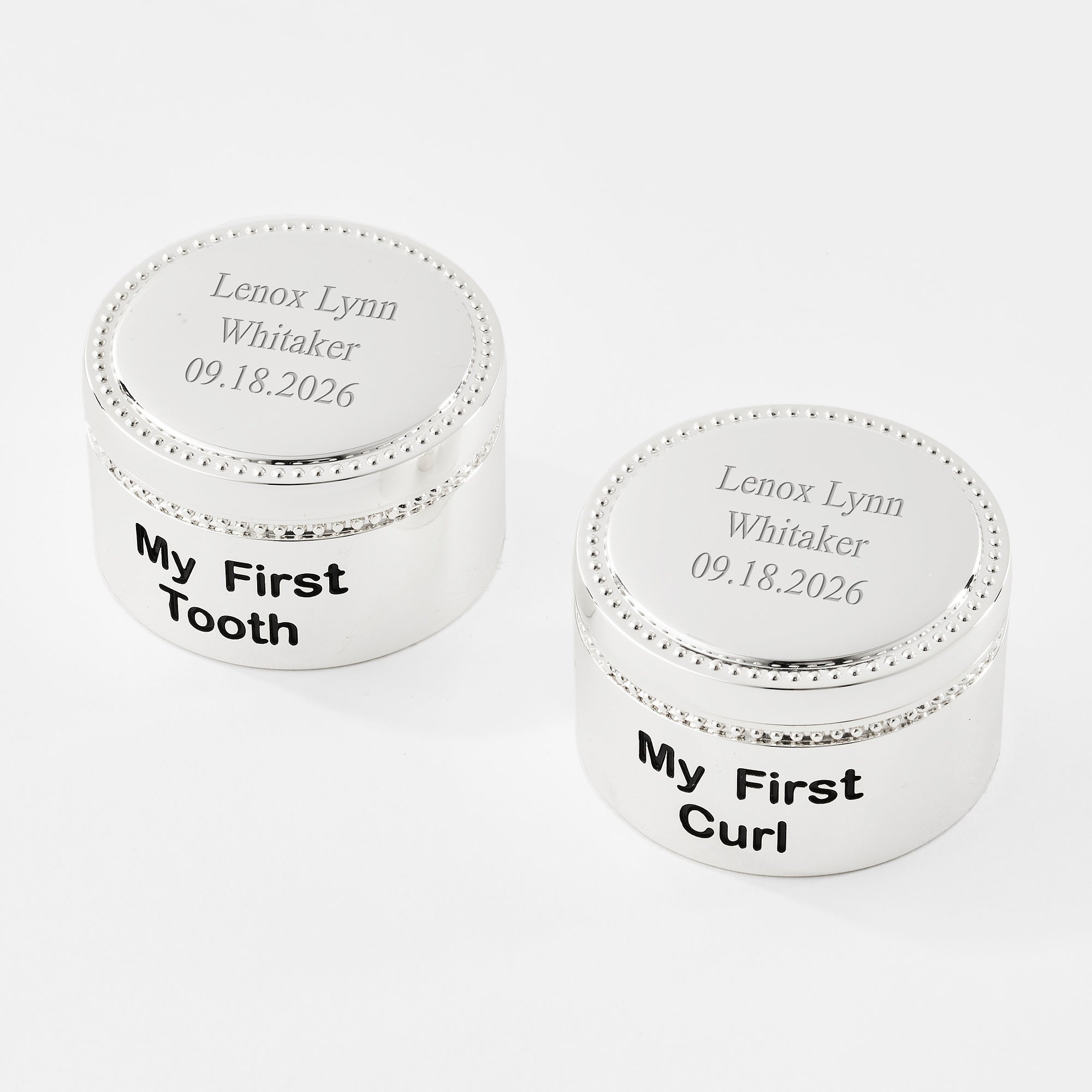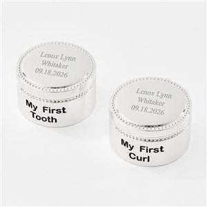 The Engraved Beaded Tooth and Curl Keepsake Set is a perfect gift for baby showers, or even a baby's first birthday. They will cherish this gift for years to come, and your choice of an engraved message on the lid of each box will make it even more special.