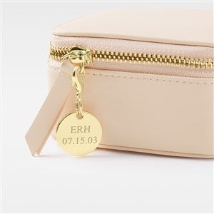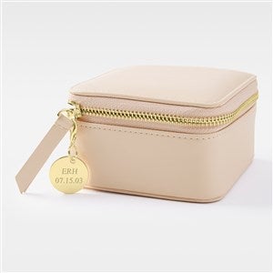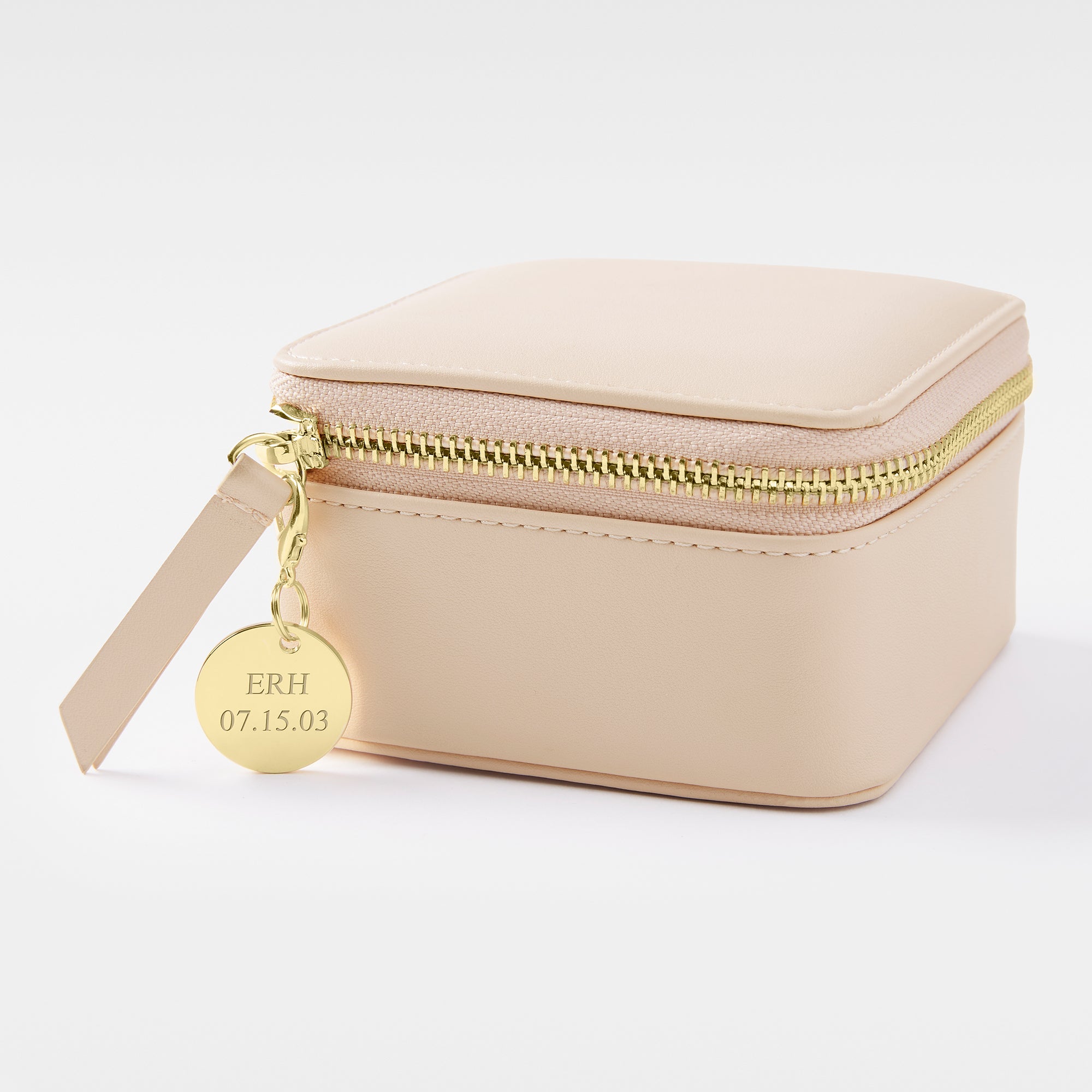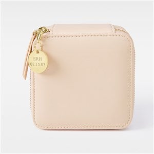 Our Engraved Blush Leather Travel Jewelry Case will help them keep all their cherished accessories safe and sound. Perfect for travel, this gift will help their accessorizing while on-the-go be a breeze!  It comes with a removable charm that we will engrave with their initials, name, a special date, or a short sentimental message. This makes a wonderful gift for Mother's Day, birthdays, bridal showers, and more! We also offer this jewelry case in black and off-white.