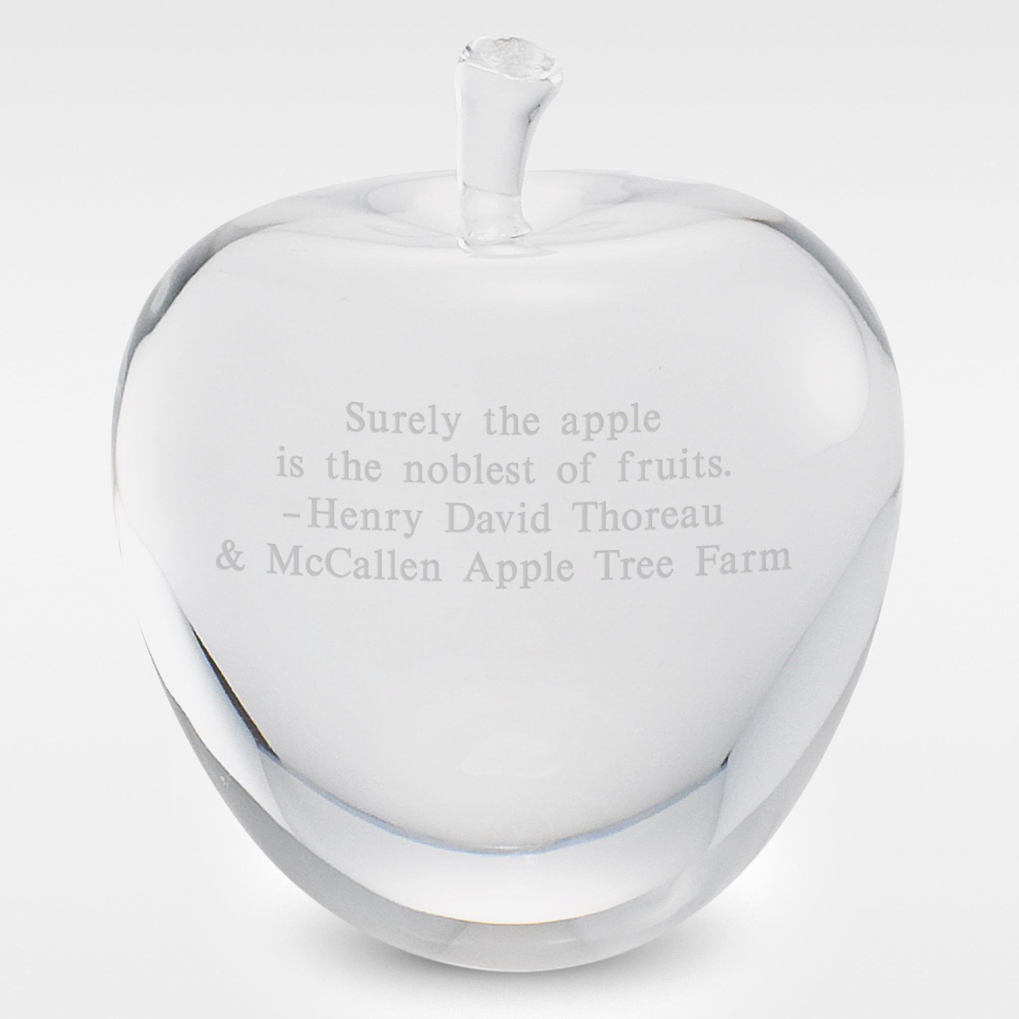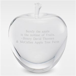 An apple a day.... this one will last them forever! Our Crystal Apple Keepsake Paperweight is the size of a real small apple and is beautiful standing on any desk or shelf. Its weight showcases the quality of this crystal keepsake. We'll engrave it with anything you'd like them see regularly! Some great options include their name, inspirational quote, or a message from loved ones.