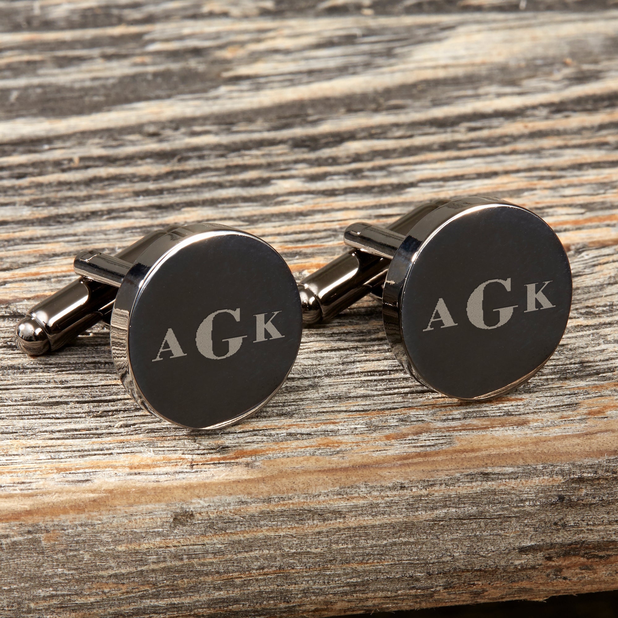 For a polished, sophisticated look that's his alone, choose our handsome Round Gunmetal Engraved Cufflinks.