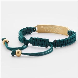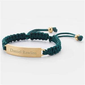 ID Bracelets are a great gift for the guy in your life; our Dark Green Cord ID Bracelet is a sharp and modern design that can be worn daily. The adjustable cord makes taking it off and on easy and they get to choose their most comfortable fit. Engrave the front and back with their name or important date. They'll love the causal style and personal touch of this gift.