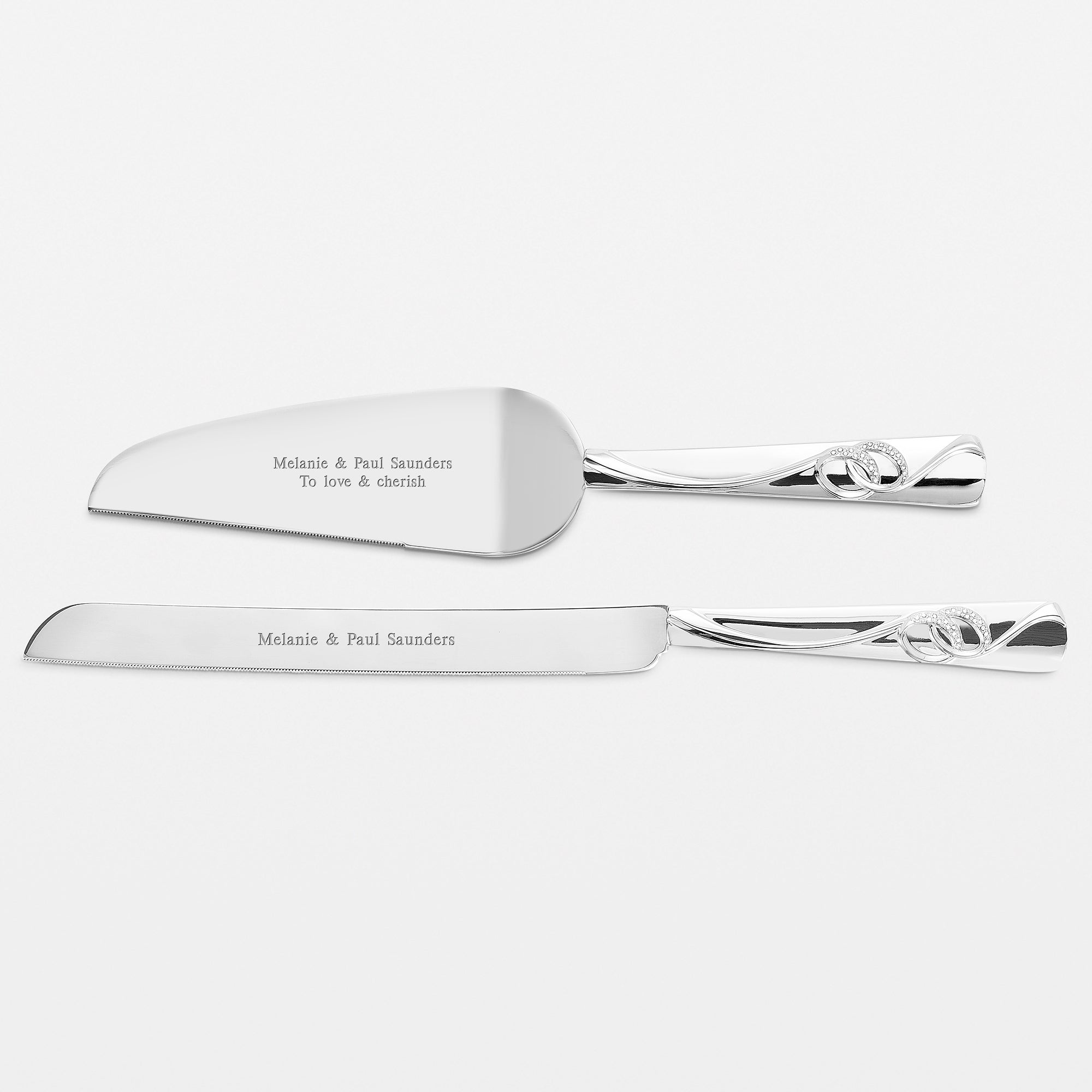 - Personalize with up to 3 lines of text on cake server and 2 lines of text on cake knife in your choice of font