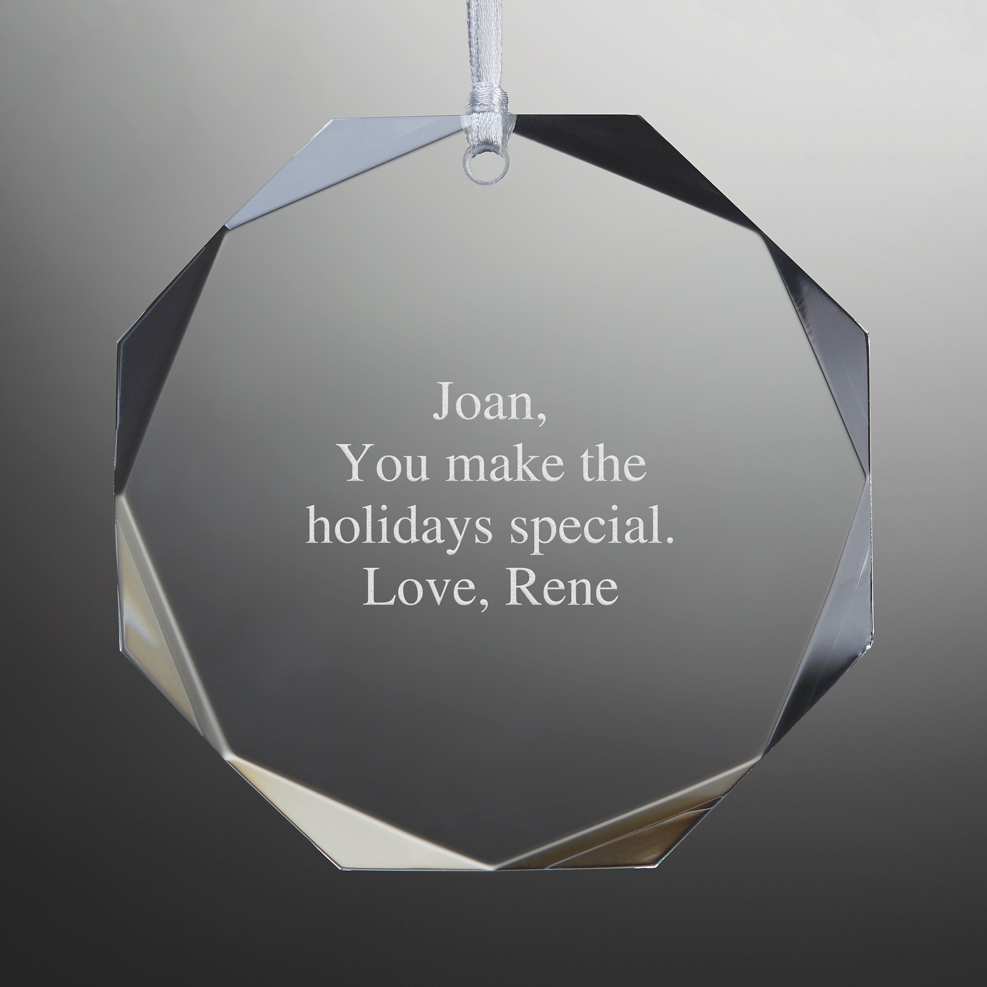 Celebrate any occasion with the Engraved Faceted Glass Ornament. We'll engrave a message of your choice to enjoy for many years to come!