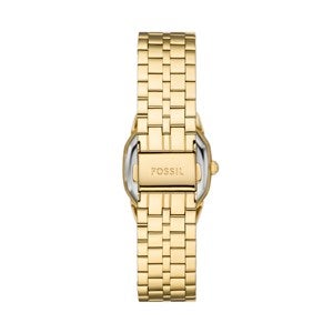 - Fossil's new Harlow watch design in gold tone with cream herringbone dial, three hand analog display