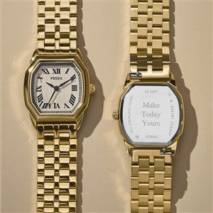 The Fossil Harlow Gold-Tone Watch is a beautiful combination of vintage and contemporary style- this timepiece will pair well with any outfit. We'll engrave a name, date, or short personal message on the back for her to cherish for many years to come.