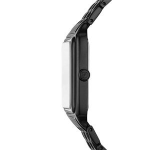 "A true icon from our archive, the rectangular Raquel watch is updated with stunning details. Slim and versatile, it features a polished black genuine abalone shell dial, three-hand date movement and a polished black stainless steel seven-link bracelet."
