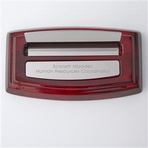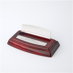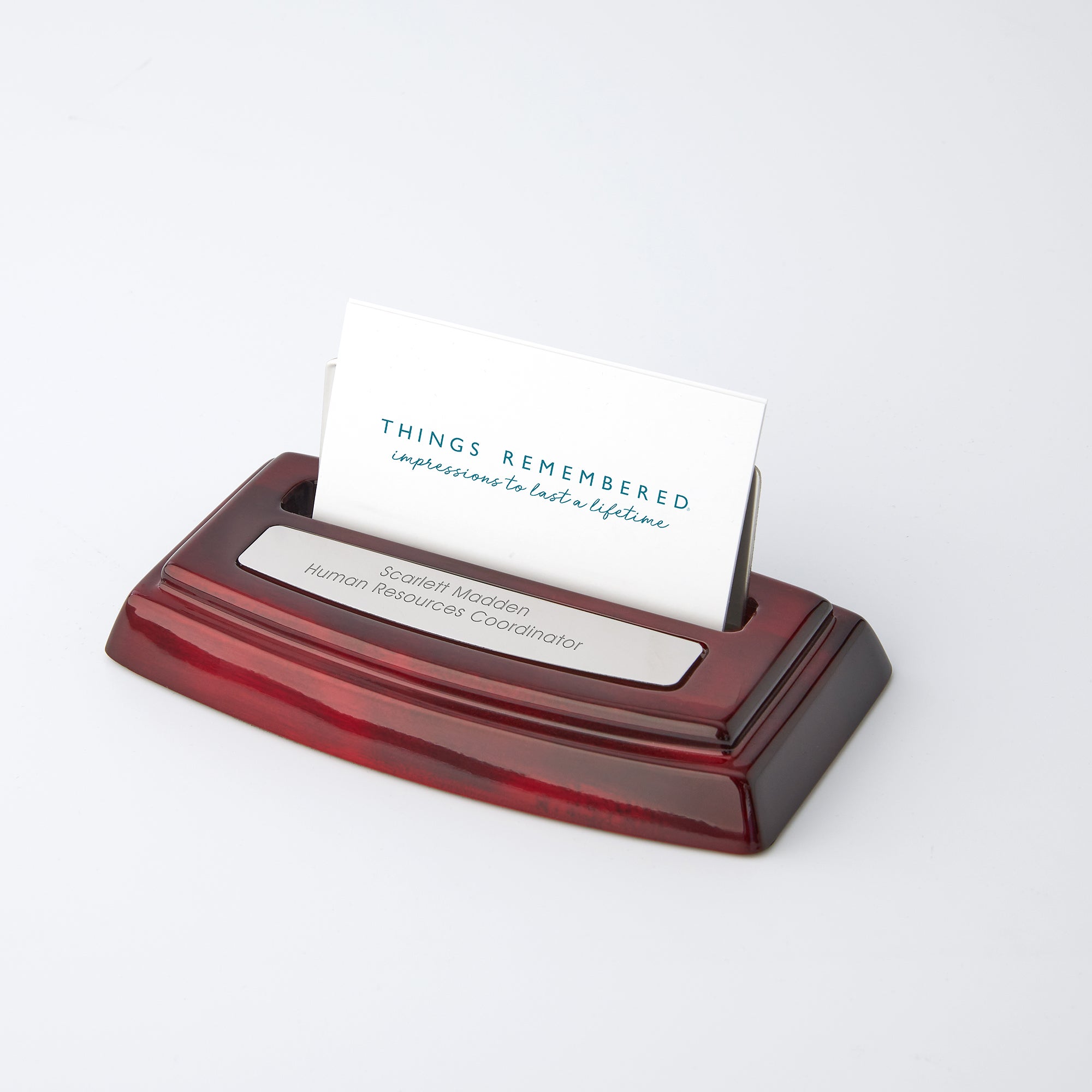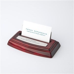 Help them keep their business cards close and presented beautifully with our Engraved Gloss Mahogany-Finish Silver Business Card Holder. Personalize the plate on the base with their name, title, or achievement. They'll feel recognized and have a useful desk accessory!