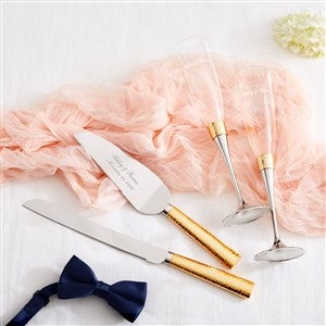 This hammered server set is a perfect accessory for the newlyweds to use at their reception! The beautiful, modern set is exquisitely crafted with stainless steel blades and delicately hammered gold metal handles.