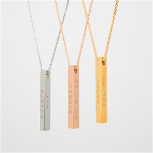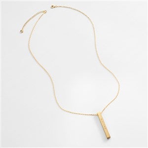 - Sterling Silver Yellow Gold "Bar" necklace that features vertical 3D rectangular pendant that can be engraved on up to 4 sides