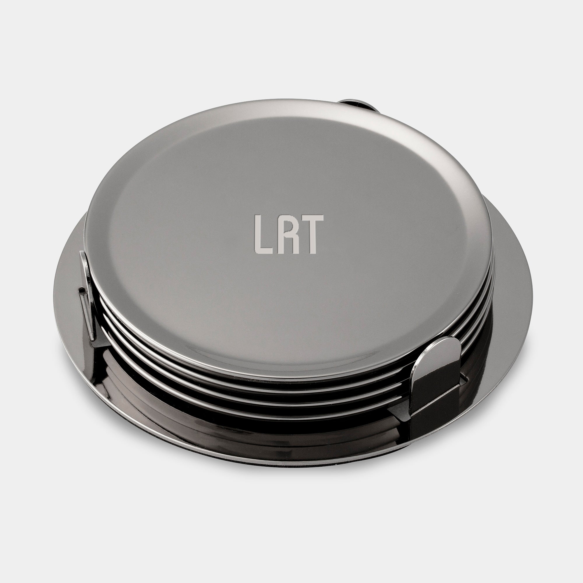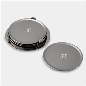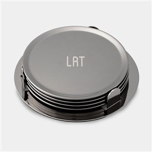 Engraved Monogram Gunmetal Coaster Set with Holder