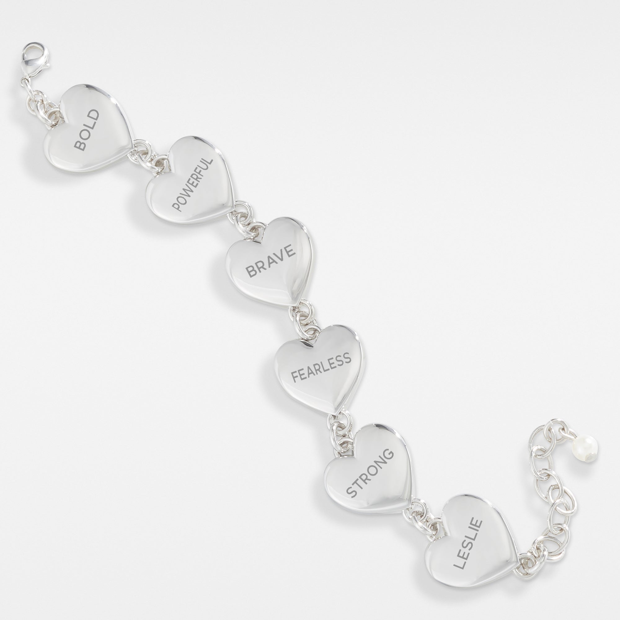 Create your own bracelet with words meaningful to you with our Engraved Heart Link Bracelet For Her. Whether a clever message or words and dates, this bracelet makes a stylish accessory.
