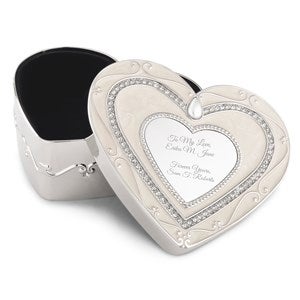 Our Heart Silver and Ivory Enamel Keepsake Box is the perfect gift to celebrate their wedding, an anniversary, or a birthday! It will provide a safe place to hold her favorite jewelry pieces when she's not wearing them! The inside of this storage box is velvet lined for gentle accessory storage. Engrave the heart on top with her initials, name, or a sweet note for the occasion.