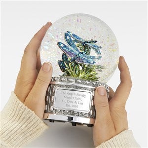 Our Jeweled Dragonfly Snow Globe features two dragonflies perched on tall grass. Gift it to any family member or friend as a unique and thoughtful gift for any special occasion. They'll love the sparkles and the music that plays when they wind it up! We'll engrave their names or a note from you on the base to make it even more special.