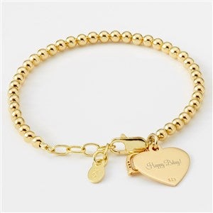 Our Engraved Kids Gold & Sterling Silver Beaded Heart Bracelet is a classic design that will be cherished for years to come! It makes a perfect gift for birthdays, religious milestones, graduation, and many other celebrations. Engrave the heart charm with their name, initials, a special date, or a short message.