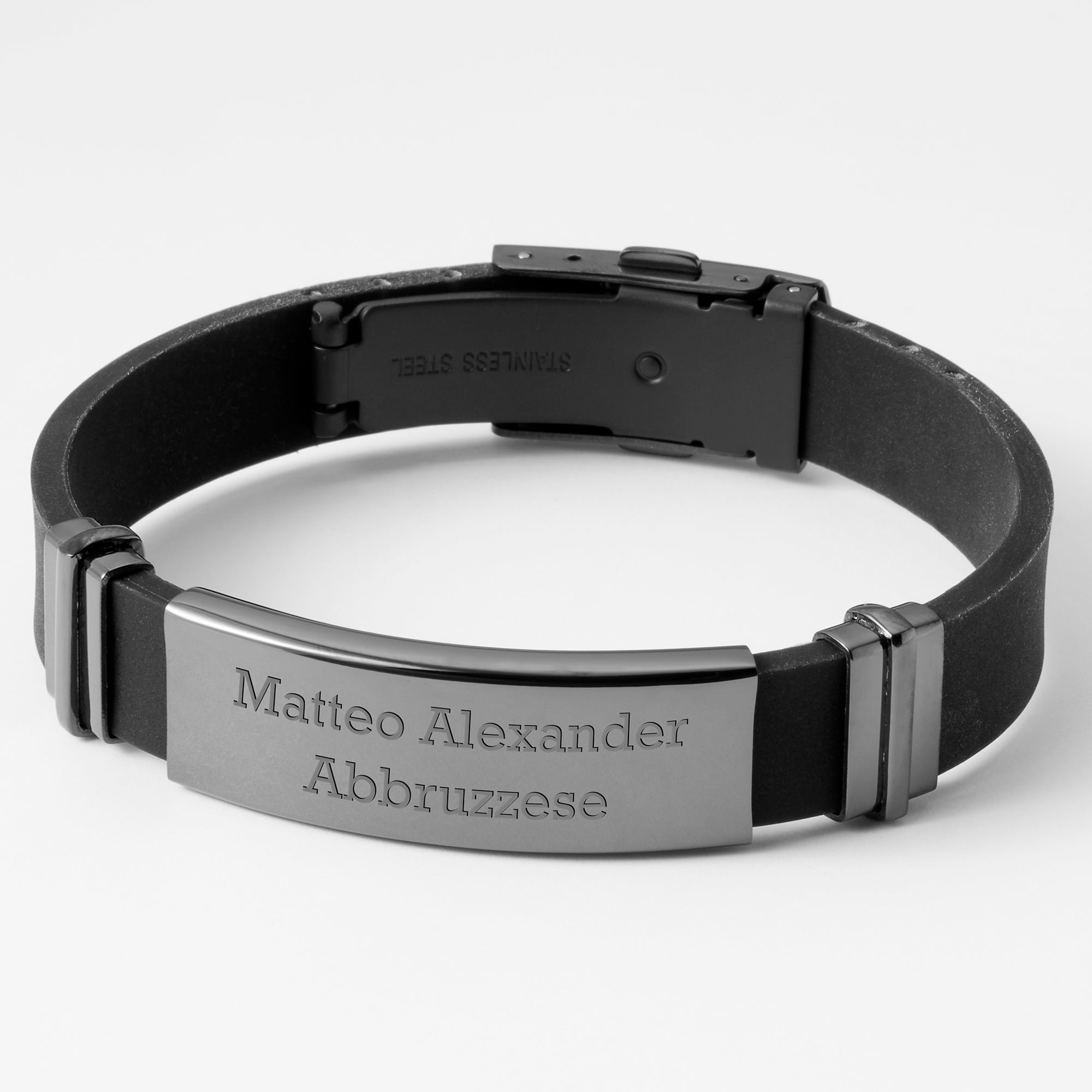 This Gunmetal and Rubber ID Bracelet makes a wonderful birthday, holiday, or anniversary gift! Engrave the metal front of the bracelet with their name or initials.