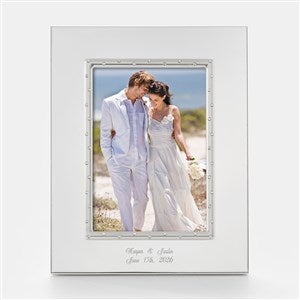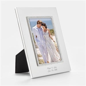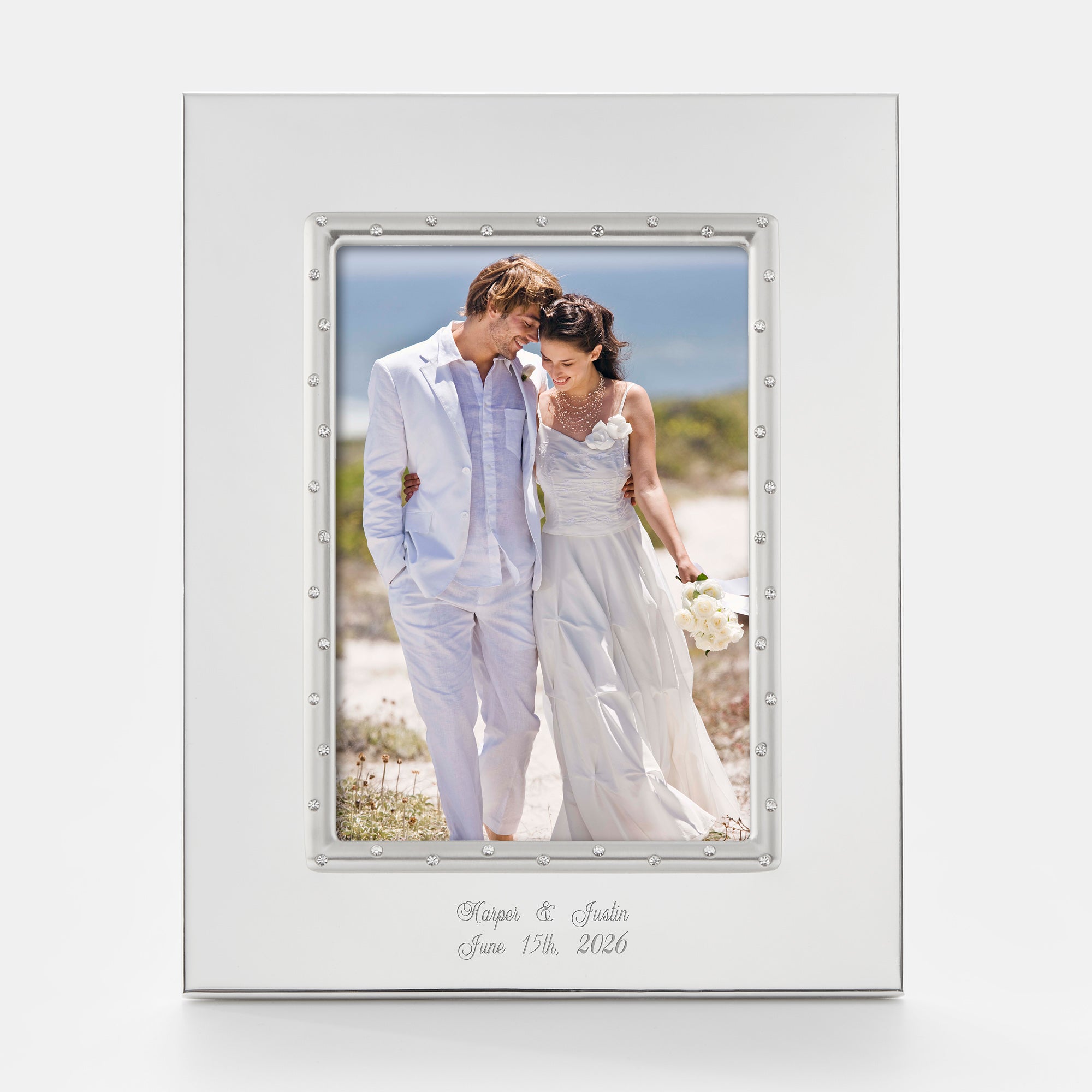 This 5"x7" picture frame from trusted brand Lenox is even more beautiful with your engraved message. From their "Devotion" collection, the design features high-shine silver frame with a crystal embellished dimensional edge around the photo opening. We'll add your personal message below the photo; we suggest their names, wedding or anniversary date, or a heart-felt note. They'll love to see their favorite wedding or family photos on display with such love and care.