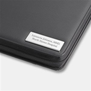 Product Information 51354 - Engraved Logo Black Vegan Leather Padfolio and Pen Set