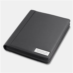 Gift the Engraved Logo Black Vegan Leather Padfolio and Pen Set to welcome new team members or celebrate work milestones. Personalize the padfolio with any name, logo, and/or text to create a special and one of a kind gift.