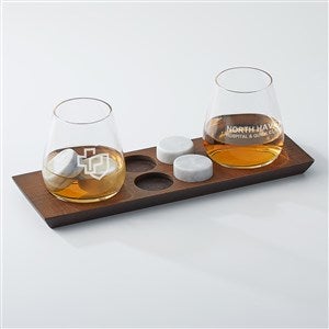 Engraved Logo DOF Whiskey Glass and Stones on Tray Set