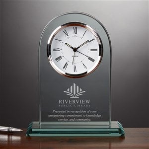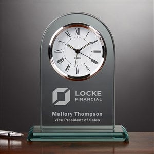 Recognize hard work, celebrate a milestone, or congratulate a hardworking employee with the Engraved Logo Glass Clock. Personalize this item with any name, logo, and/or text.