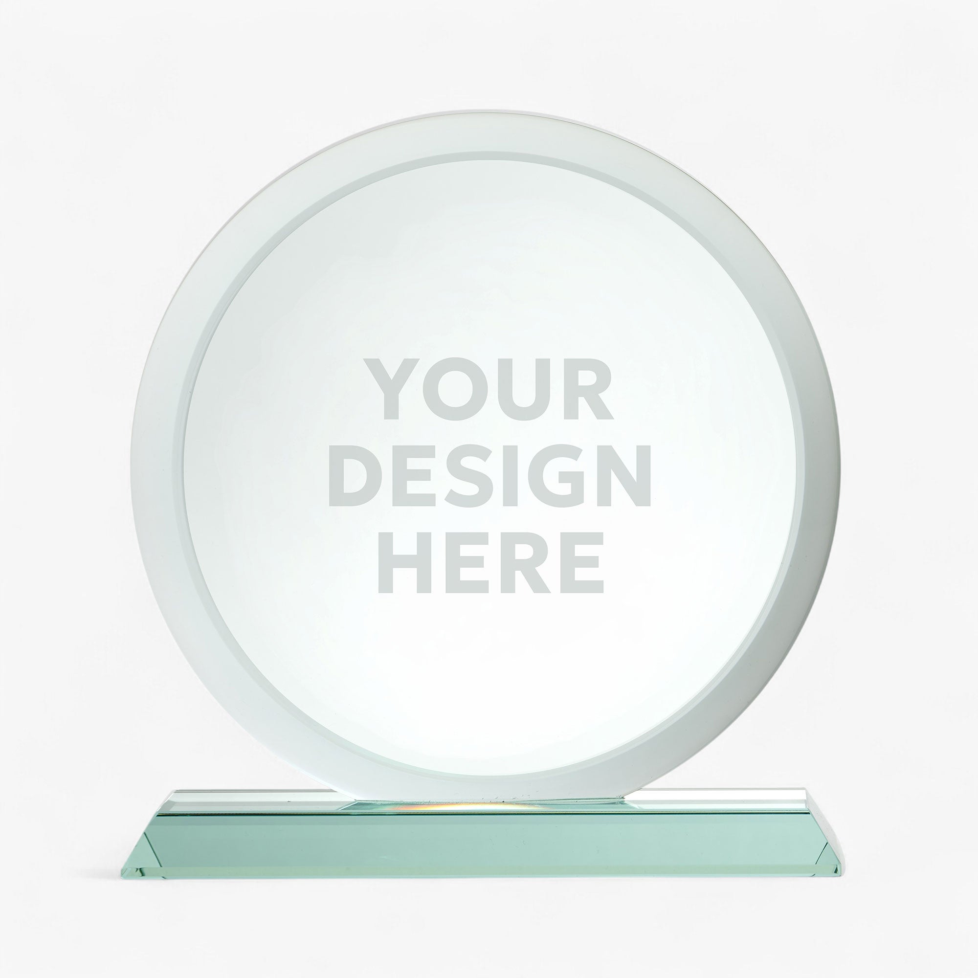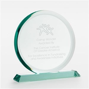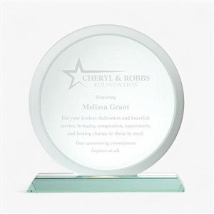 Recognize their hard work and accomplishments by gifting them the Engraved Logo Round Jade Glass Award- Medium. Custom engraved with any name, logo, and/or text. Measures 8" tall.