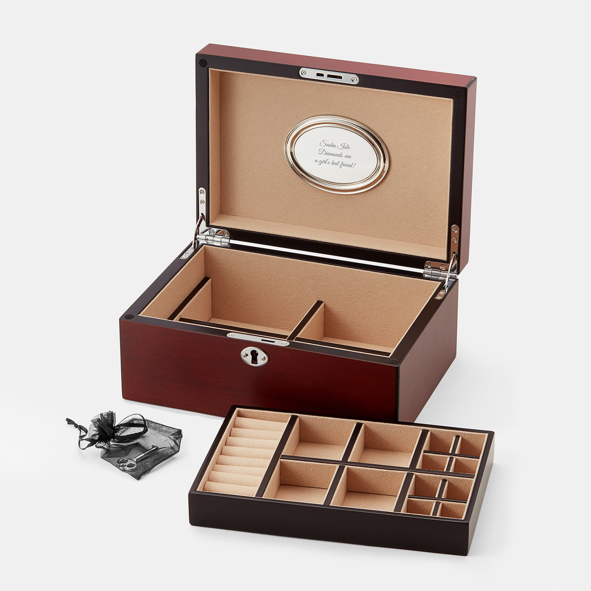 Engraved Matte-Finish Wooden Jewelry Box with Lock