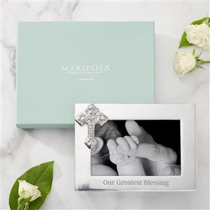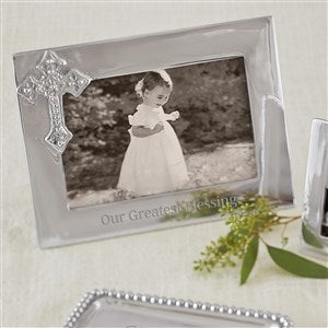 From beloved brand Mariposa, this cross frame will beautifully display one 4x6 photograph. This is a lovely gift for a variety of occasions. Engrave the bottom of the frame with any name, date, or short message for extra sentiment.