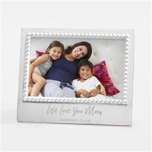 The classic design of the Engraved Mariposa® Message For Mom Statement Frame is an elegant compliment to any of mom's favorite photo. This stunning frame edged with a handcrafted string of pearls border, makes an exquisite gift.