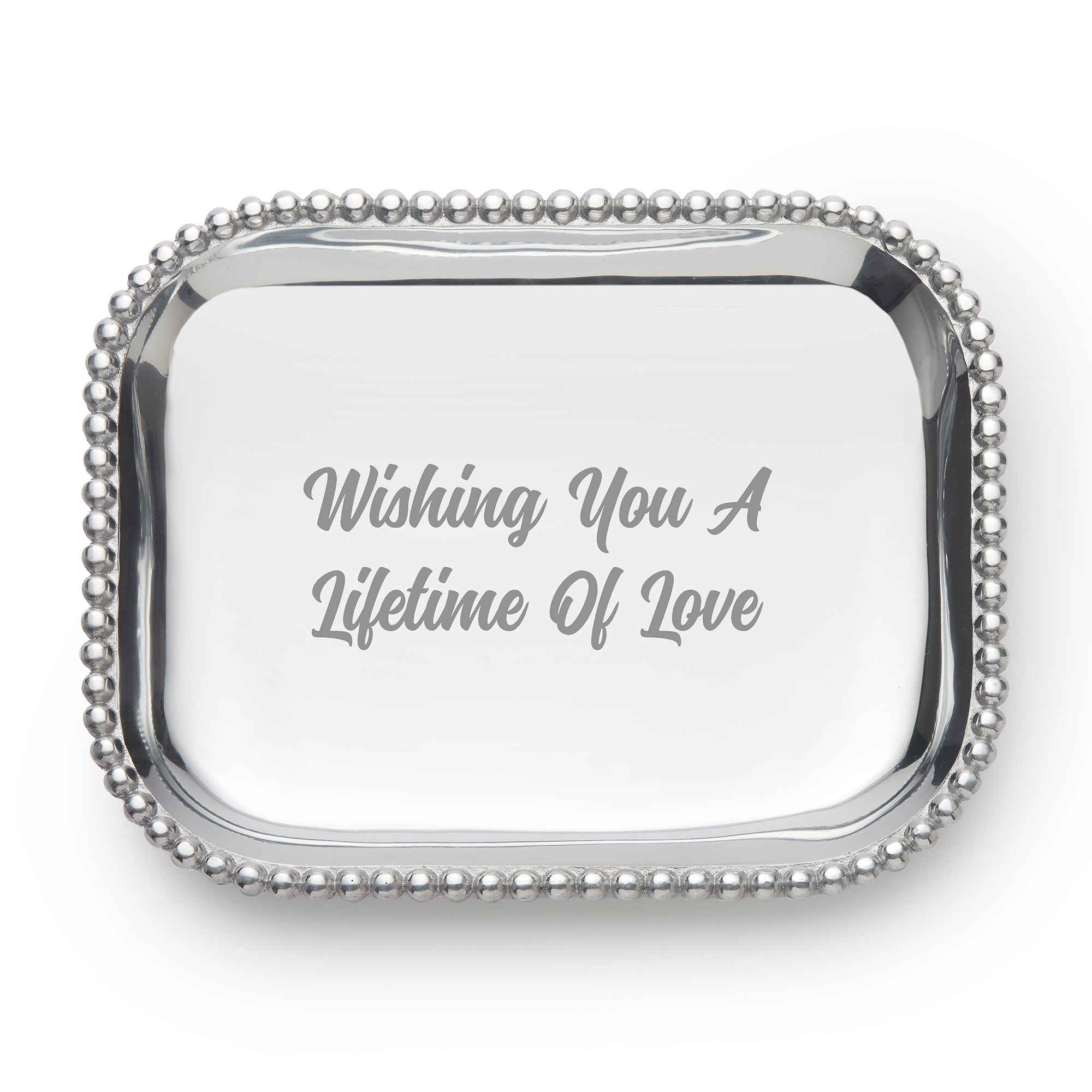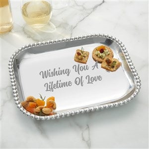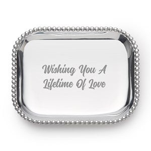 From beloved brand Mariposa, the Pearled Rectangular Platter will compliment a variety of occasions! Weddings, baby showers, birthdays, holidays, and even retirement parties will be instantly elevated by this piece. Engrave the tray with a name, date, or short message for extra sentiment.