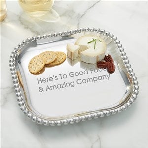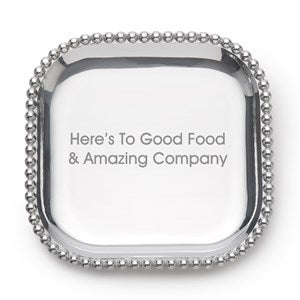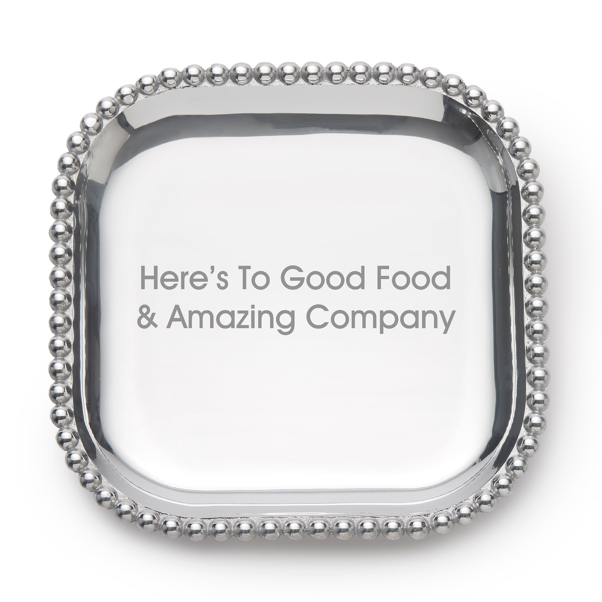 From beloved brand Mariposa, the Pearled Squared Platter will compliment a variety of occasions! Weddings, baby showers, birthdays, holidays, and even retirement parties will be instantly elevated by this piece. Engrave the tray with a name, date, or short message for extra sentiment.