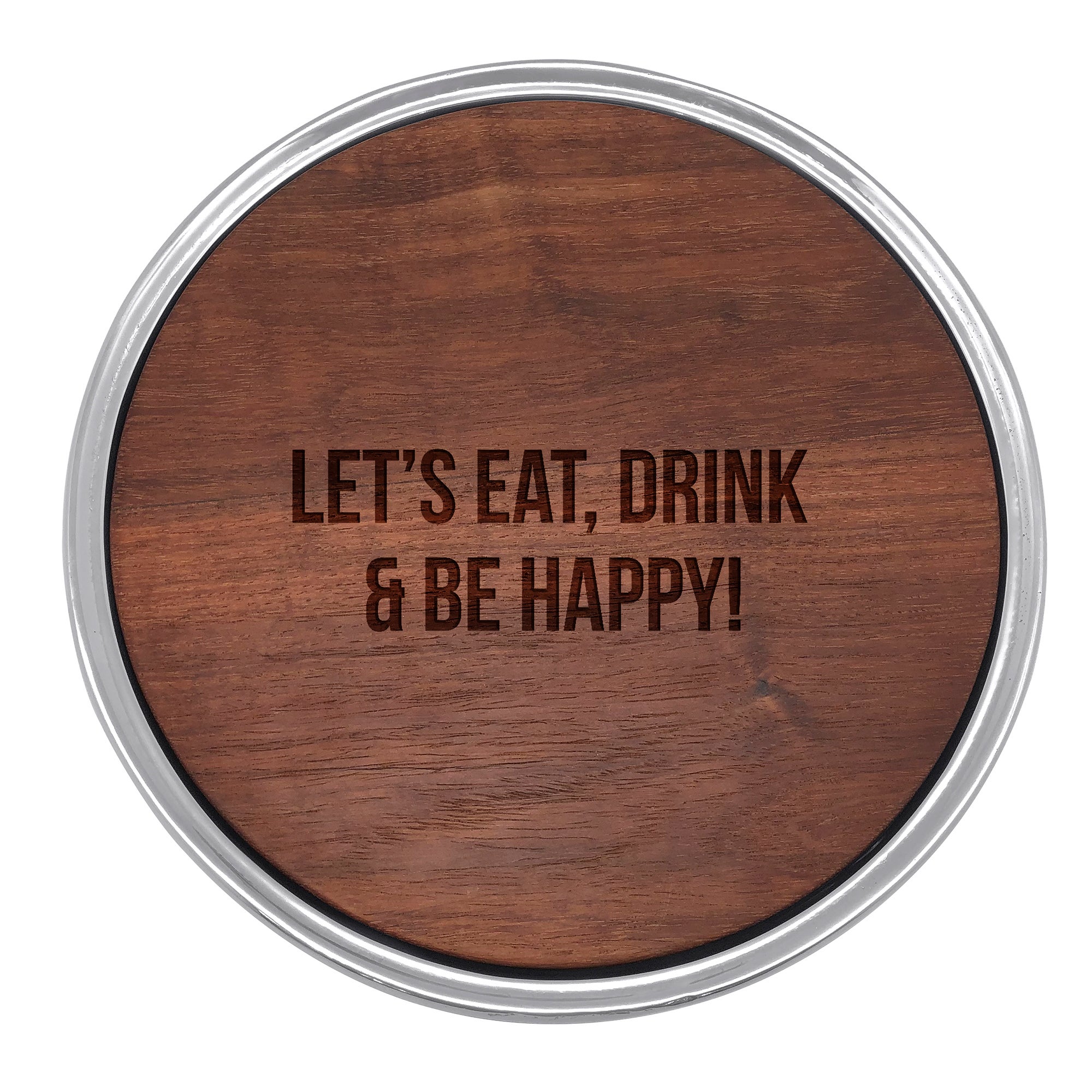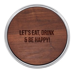 "Our Signature Collection is both classic in design and sleek it nature, and lends itself to a traditional style perfect for any occasion. Sustainably harvested Caribbean Walnut Wood brings warmth to our Signature 10" Round Cheese Board - a perfect element for an evening of entertaining. This is the perfect gift to personalize with a unique engraved message on the metal inlay. The dark wood insert is easily removable for cleaning and care. Handcrafted from 100% recycled, buffed-until-brilliant aluminum."