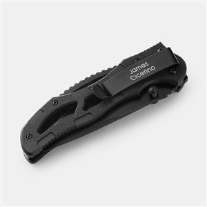The Engraved Matte Black Stealth Pocket Knife is quality crafted of steel in a sleek black finish. The streamlined design will provide years of reliability and use, creating a unique gift for Father's Day, birthdays, groomsmen, and more.