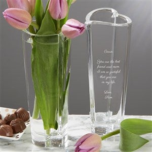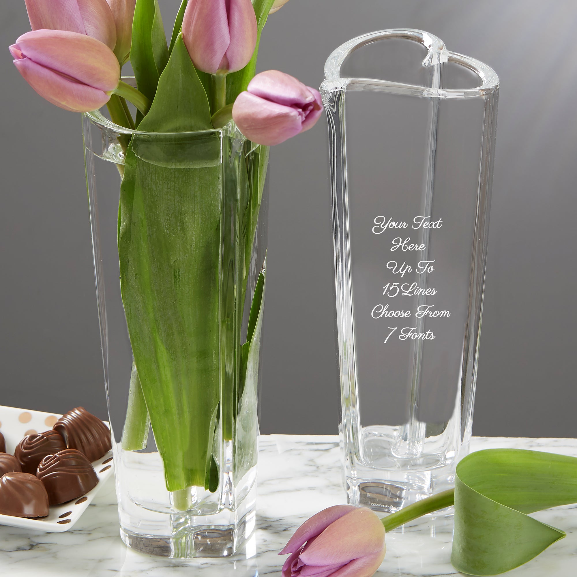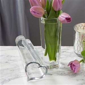 Display you favorite flowers with our stunning Orrefors Engraved Message Crystal Heart Bud Vase.