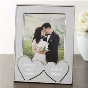 Capture your favorite moment for a lifetime in our exclusive Engraved Message Double Hearts Silver Picture Frame. Makes an elegant gift for any newlyweds!